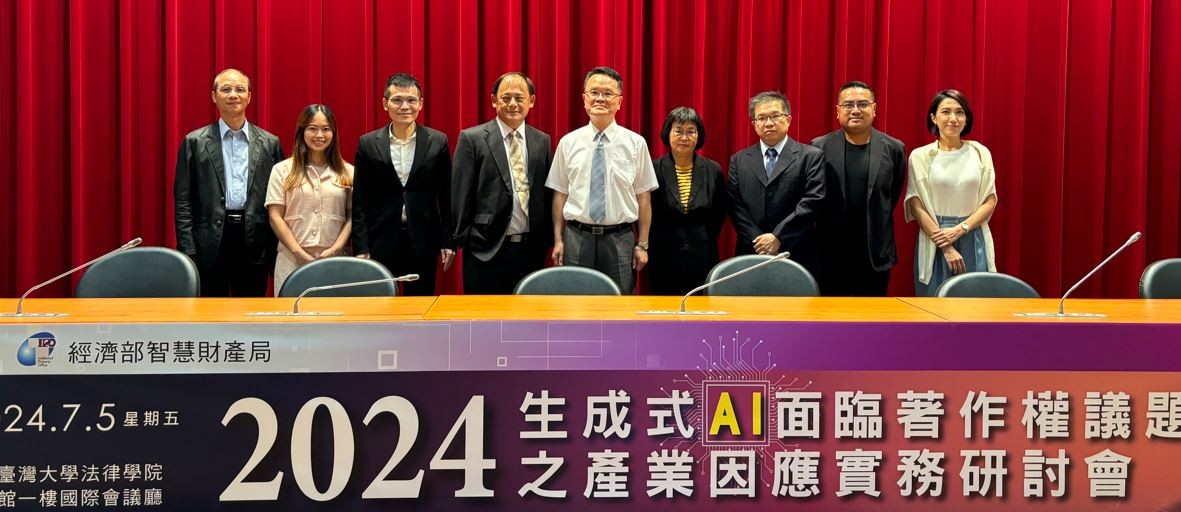 為進一步了解國內外產業實務界針對AI與著作權議題之因應對策及促進公眾意見交流,經濟部智慧財產局於113年7月5日在臺灣大學法律學院霖澤館舉辦「生成式AI面臨著作權議題之產業因應實務研討會」,邀請著作權專家學者章忠信助理教授、賴文智律師、國科會大型語言模型訓練組蔡宗翰召集人以及台灣微軟楊千旻法務協理、Google台灣林品瑄法務長、Adobe黃耀興香港及台灣首席工程顧問等AI產業界代表擔任講師,吸引來自產、官、學界等超過200人與會,透過對生成式AI相關著作權議題的深入探討與意見交流,促進不同產業間的互動與理解。